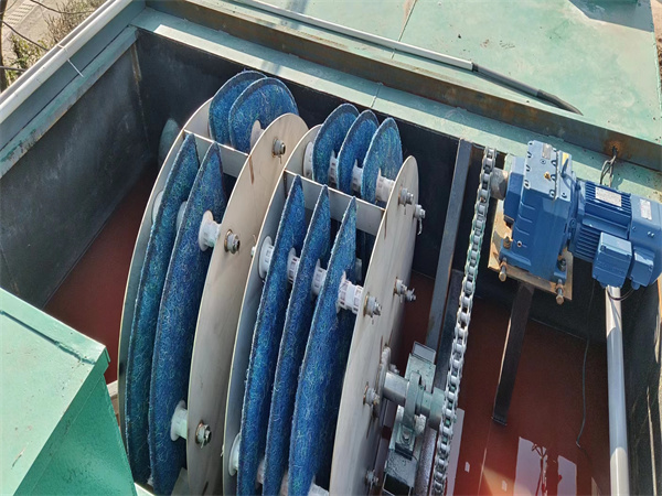 纖維轉(zhuǎn)盤濾池機械設備較少,泵及電機均間隙運行,過濾時濾盤是靜止的,只有反沖洗或排泥時,泵或電機才運轉(zhuǎn)。濾布磨損較小,濾盤易于更換,更換一個盤僅需10分鐘。